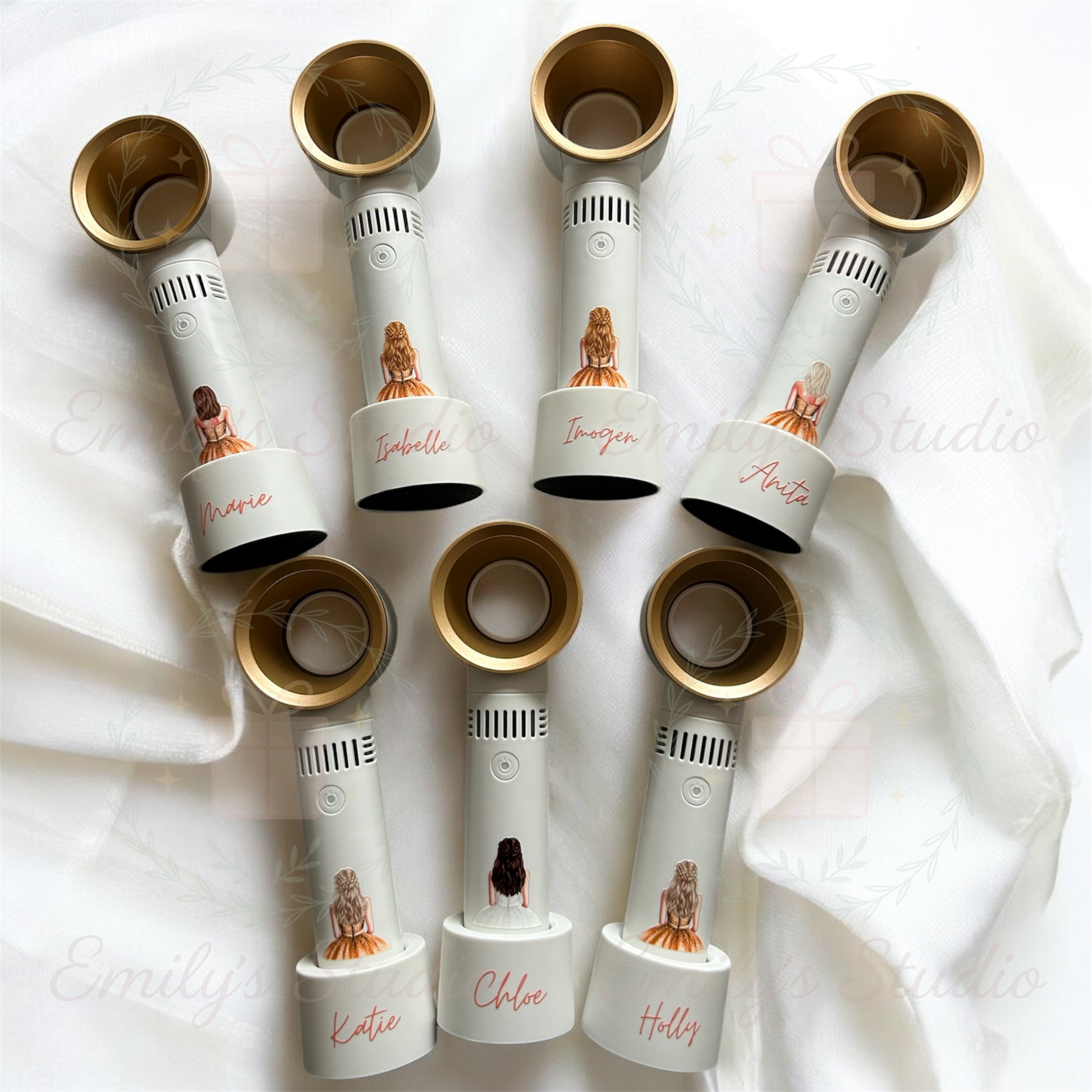The bridal decal will be cut just above where the dress shows at the back to fit nicely on the fan